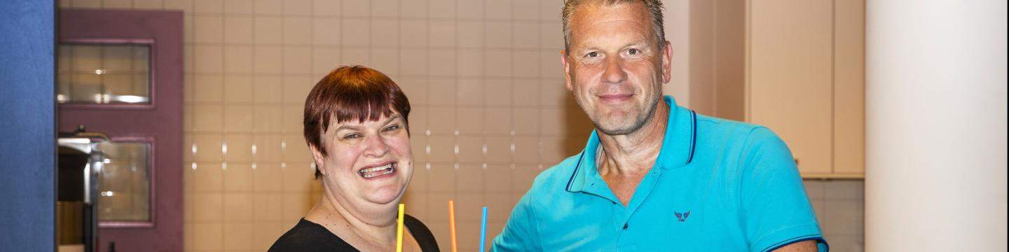 'Sinds anderhalf jaar ben ik locatiecoördinator bij Liudger. Grietje werkte hier toen al. Wat me direct opviel was haar enthousiasme. Ze wil heel graag dingen doen, is gedreven en altijd vriendelijk. Elke vrijdag werkt ze met iemand samen in de keuken op onze locatie. Ze maakt dan koffie en broodjes, doet schoonmaakwerk en rekent soms ook af. Ik zie vaak een grote glimlach op haar gezicht tijdens het werk. Voor Grietje is het belangrijk dat ze afgebakende taken krijgt. Ze houdt niet van verrassingen. Als Grietje ergens mee zit of een vraag heeft, deelt ze dat direct. Ik denk dan met haar mee en motiveer haar ook. We hebben een goede klik, zijn allebei een “mensen-mens”. Deze school past goed bij Grietje. Het bruist en is gezellig. Er is altijd iemand om een praatje mee te maken. We zien Grietje echt als onderdeel van ons team en hopen dat ze nog minstens tien jaar blijft!’