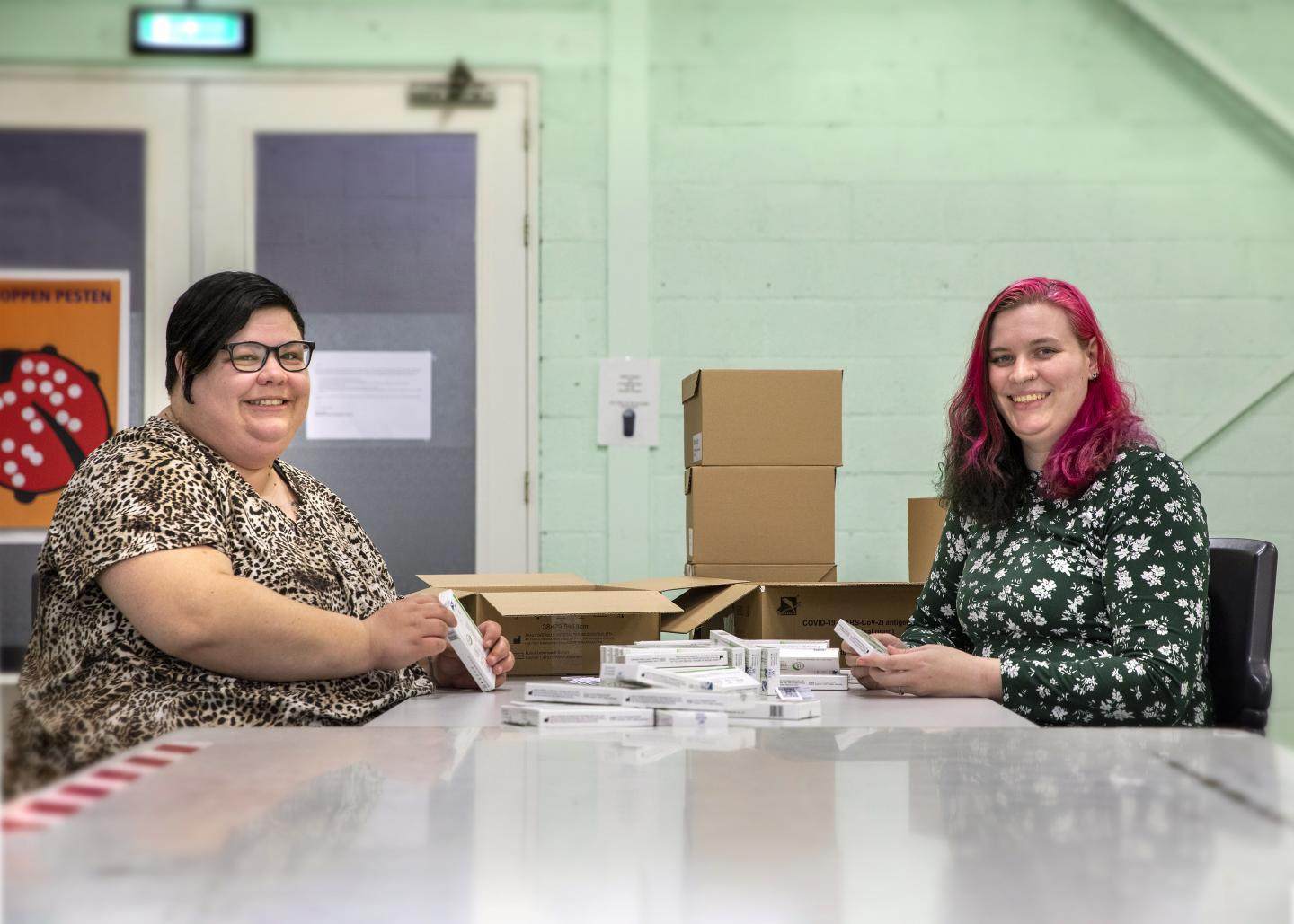 Melissa: ‘Ik ben erg blij met de hulp van Jessica. Samen zijn we een geoliede machine. Ik geniet enorm van de gezelligheid wanneer we samenwerken. We kletsen heel wat af, maar we werken ondertussen flink door. Samen met onze teamleider Aad hebben we gesprekken of we op een andere afdeling aan de slag kunnen. Ik vind het prima, zolang we maar samen blijven. Ik moet er niet aan denken om zonder Jessica te werken.’